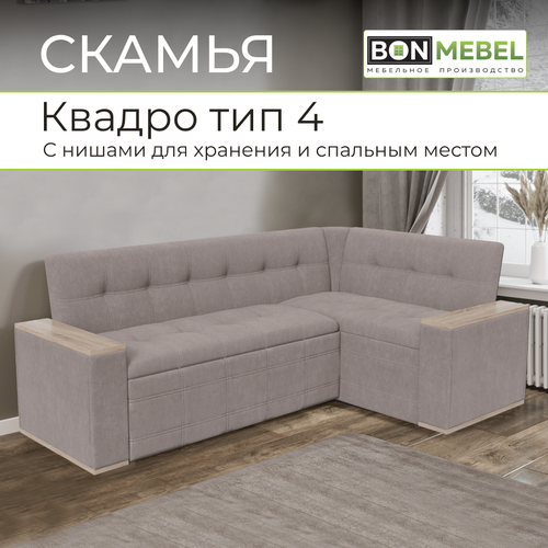 Кухонный уголок Квадро Тип 1 Исп 2, БонМебель, ТК Капри, Бежевый, со спальным местом, диван