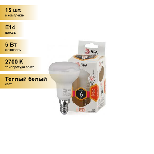(15 шт.) Светодиодная лампочка ЭРА стандарт R50 E14 6W(500lm) 2700K 2K 83x50 R50-6w-827-E14 6673