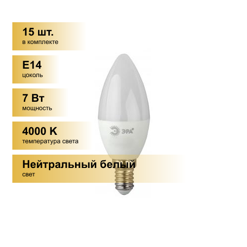 (15 шт.) Светодиодная лампочка ЭРА стандарт свеча B35 E14 7W(560lm) 4000K 4K 109x37 B35-7w-840-E14 6100