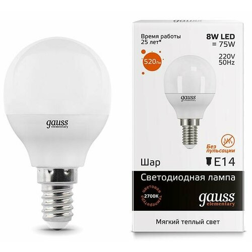 Лампа светодиодная шар Gauss Elementary Globe E14 8W 2700K 53118