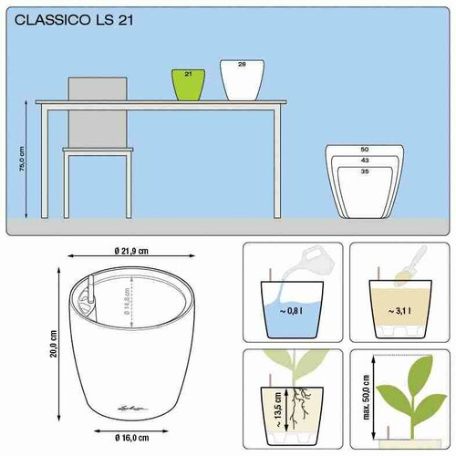 Кашпо LECHUZA без системы автополива Classico 21х20, 21x20 см