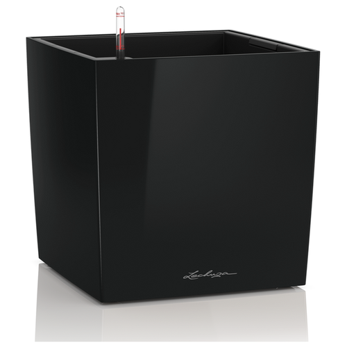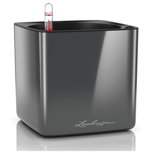 Кашпо LECHUZA CUBE Glossy с автополивом, 0.4л, 12x13.5 см, 14x14x13.5 см, антрацитовый блестящий