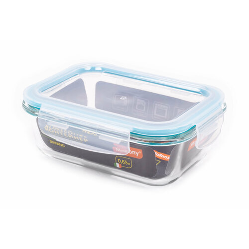 Контейнер для хранения продуктов Mallony / Маллони DIAFANN стекло с пластиковой крышкой белый 17.6×13.1×6.5см объем 0.65л / емкость герметичная