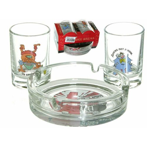 Набор "Приколы" из трех предметов - двух стопок объемом 50 мл. и бычницы стекло