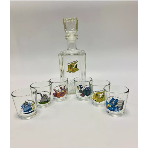 Набор для водки, саке, настойки графин 0,5 л. и 6 стопок 50 мл. "Приколы" стекло
