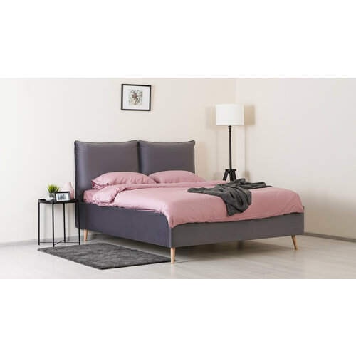 Двуспальная кровать 140х200 "Соня" Велюр светло-серый