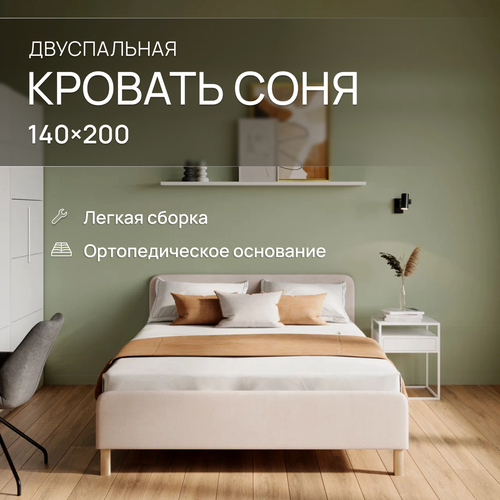 Двуспальная кровать 140х200 "Соня" Велюр светло-серый
