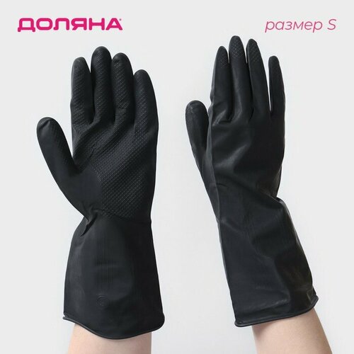 Перчатки хозяйственные Доляна, латексные, 50 гр, размер S, цвет чёрный
