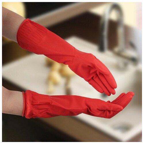 Перчатки хозяйственные резиновые Доляна, размер S, длинные манжеты, 90 гр