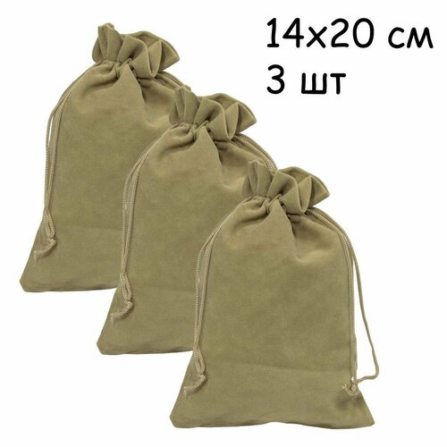 Мешочек подарочный бархатный кофе с молоком 14х20 см для подарков, для хранения, комплект 3 шт.