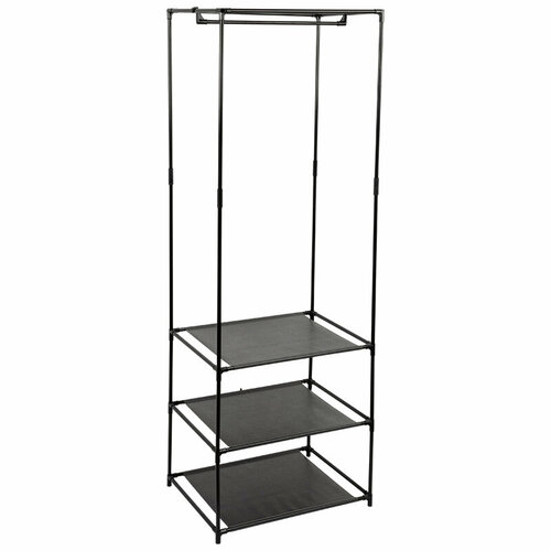 Вешалка для одежды и обуви, напольная металлическая, стеллаж с полками, 60 см, черная