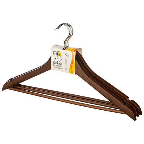Набор вешалок деревянных с перекладиной, 3 шт, цвет темно-коричневый