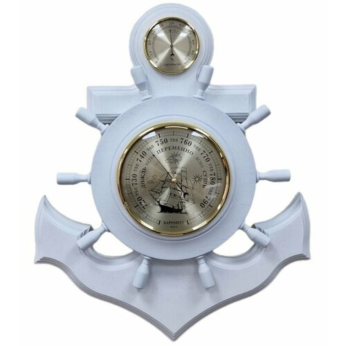 Метеостанция настенная 2 в 1 (барометр, гигрометр) "Якорь со штурвалом" (белый)