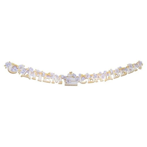Мини-гирлянда "С Днем Свадьбы!" торт, цветы./В упаковке шт: 1