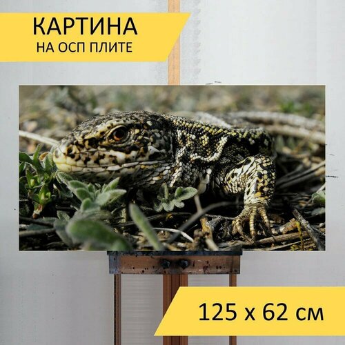 Картина на ОСП 125х62 см. "Рептилии, природа, ящерицы" горизонтальная, для интерьера, с креплениями