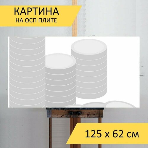 Картина на ОСП 125х62 см. "Монеты, монета, серебряная монета" горизонтальная, для интерьера, с креплениями