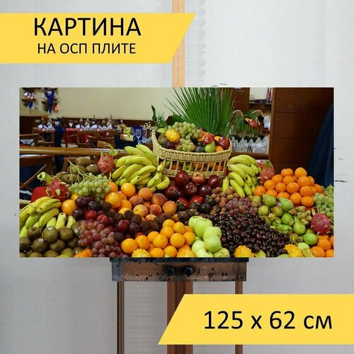 Картина на ОСП 125х62 см. "Фрукты, фруктовый буфет, бананы" горизонтальная, для интерьера, с креплениями