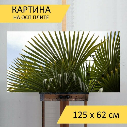 Картина на ОСП 125х62 см. "Веерная пальма, palm, рука образный" горизонтальная, для интерьера, с креплениями