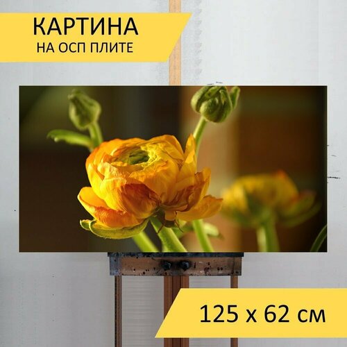 Картина на ОСП 125х62 см. "Лютик, рано цветущий, лютиковые" горизонтальная, для интерьера, с креплениями