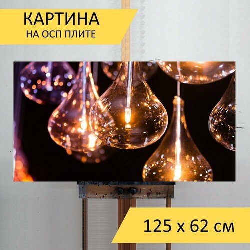 Картина на ОСП 125х62 см. "Свет, лампочка, электричество" горизонтальная, для интерьера, с креплениями