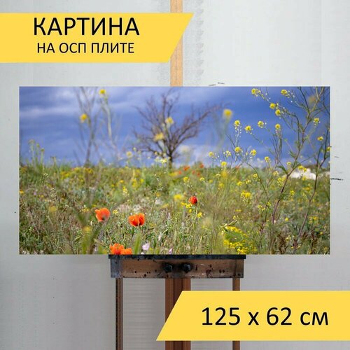 Картина на ОСП 125х62 см. "Природа, цветы, цвести" горизонтальная, для интерьера, с креплениями