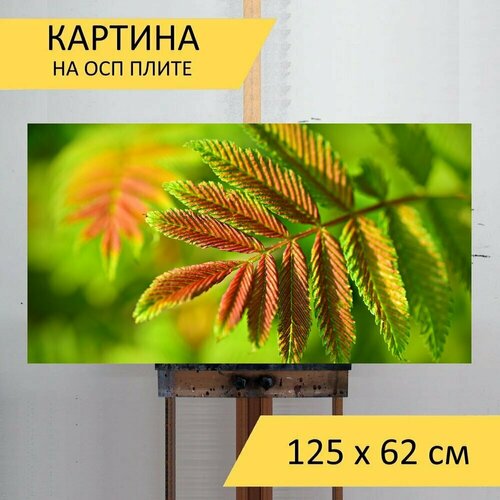 Картина на ОСП 125х62 см. "Лист, кустарник, шаблон" горизонтальная, для интерьера, с креплениями