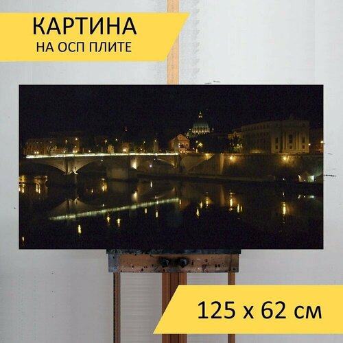 Картина на ОСП 125х62 см. "Рим, ночь, река" горизонтальная, для интерьера, с креплениями