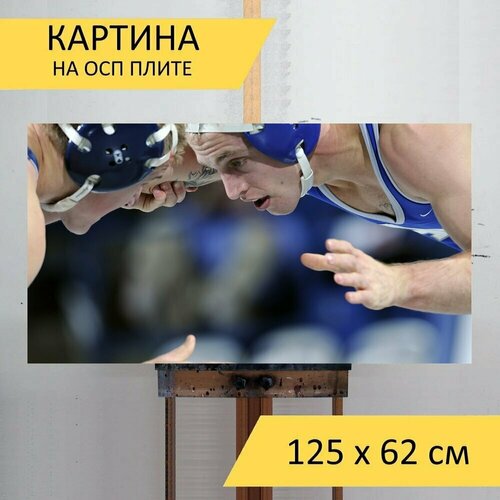 Картина на ОСП 125х62 см. "Борьба, виды спорта, грэпплинг" горизонтальная, для интерьера, с креплениями