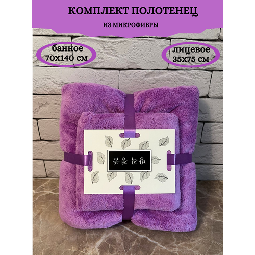 Комплект банных полотенец. Полотенце для тела, лица, рук, ног, 2 шт. Микрофибра. Сиреневый