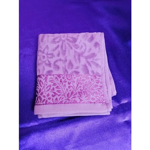 Полотенце махровое артикул 1567 сиреневого цвета с рисунком цветы размер:35*70