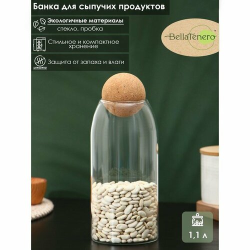 Банка стеклянная для сыпучих продуктов с пробковой крышкой BellaTenero «Эко. Шар», 1,1 л, 9,5×24 см