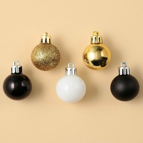 Набор eлочных шаров, d-3 см, 16 шт, пластик, цвета чeрный, золотой, белый