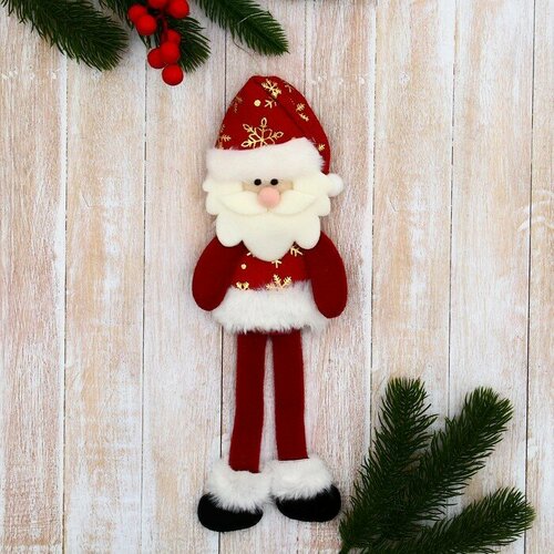 Мягкая подвеска Дед Мороз в костюмчике с узором, длинные ножки 8х26 см, красный