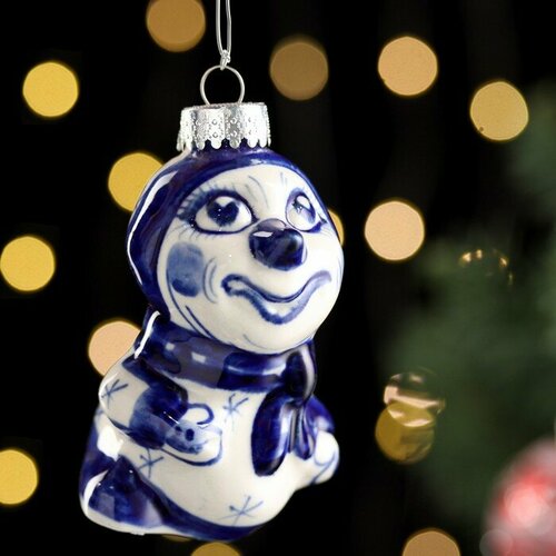 Ёлочная игрушка Снеговичок, гжель, фарфор, h-10см