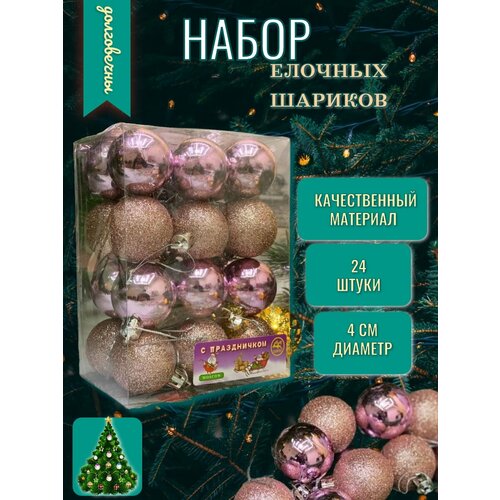 Набор шаров пластик d-6 см, 24 шт Мелодия ассорти люкс, белый серебро сиреневый