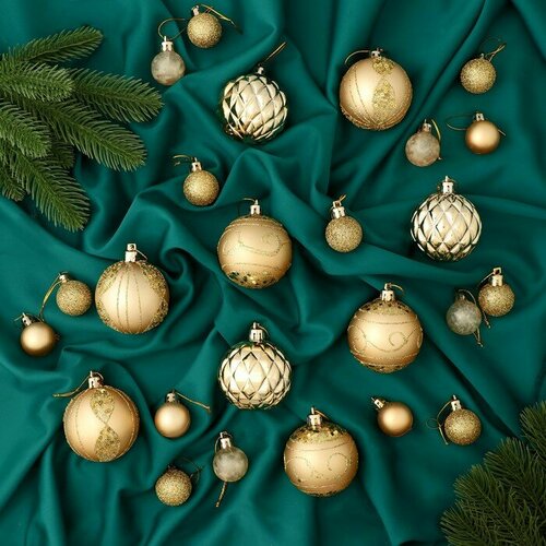 Набор шаров пластик d-2,5 и 5,5 см, 33 шт Хоровод золото