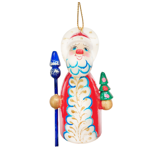 Ёлочная игрушка "Дед Мороз с посохом" 10см.
