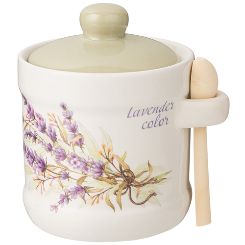 Банка для сыпучих продуктов Агнесс Душа прованса с крышкой и ложкой керамика разноцветный 300мл / посуда для кухни / контейнер для хранения / банка