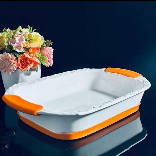 Прямоугольное блюдо для запекания 35х23х6,5см с силикон. ручками Фарфор 142-128 118-142-128