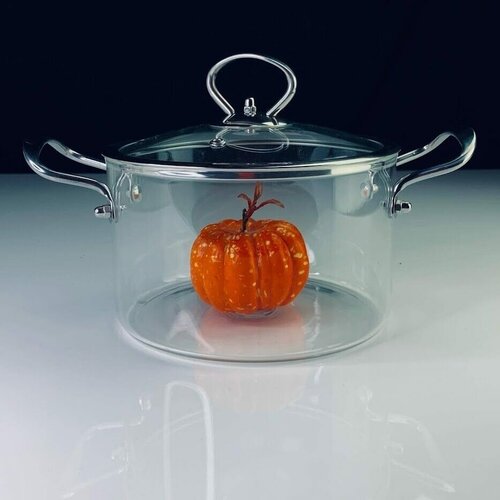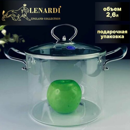 Стеклянная кастрюля с крышкой, 2,6 л. Lenardi. Подарочная упаковка.