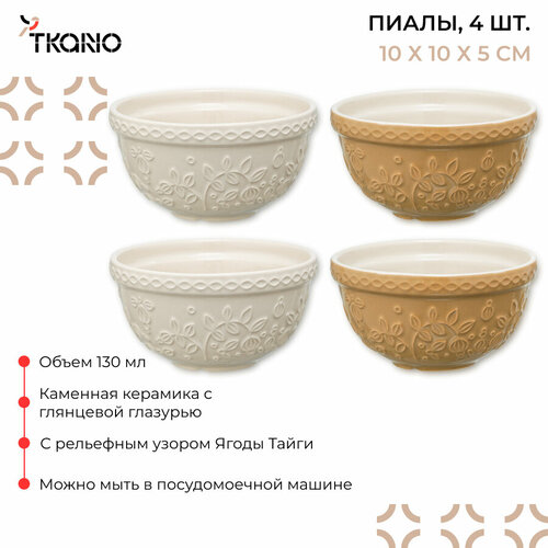 Пиала 130 мл керамическая для соуса Ягоды Тайги из коллекции Russian North кремовая бежевая, набор из 4 пиал Tkano TK22-TW_BW0013