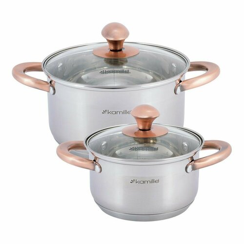 Кастрюля Kamille 4.5л из нержавеющей стали с крышкой и полыми ручками