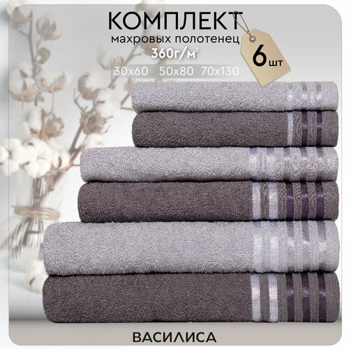 Набор махровых полотенец Селена 30х60, 50х80, 70х130, 6шт, Серый