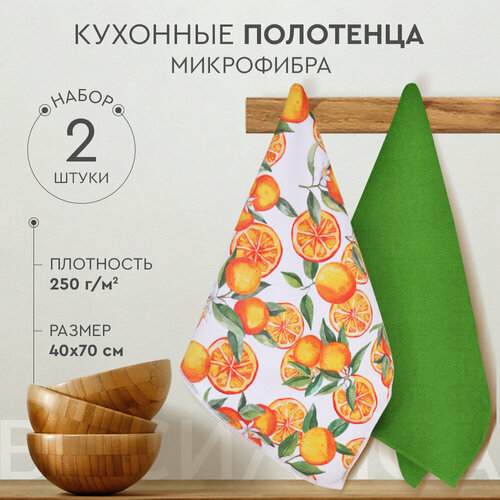 Набор кухонных полотенец Василиса, 40х70 см, 2шт, Микрофибра, Oranges+Green