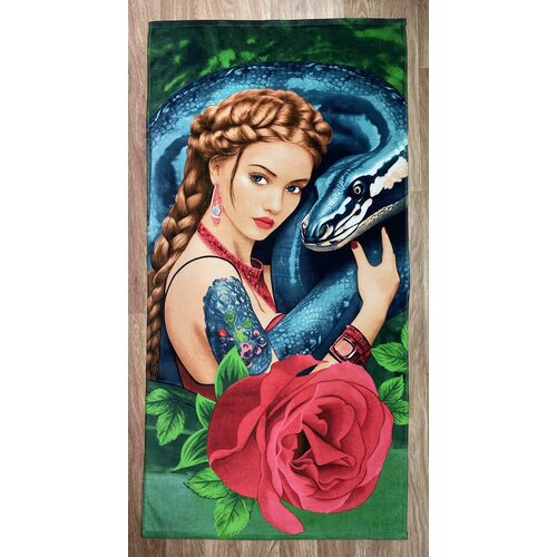 Полотенце пляжное, для бассейна, банное в подарок на Новый год и Рождество с Символом года "Змея"