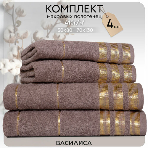 Набор махровых полотенец Василиса Версаль 50х80, 70х130, Тауп, 4шт