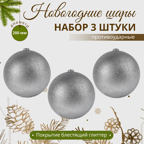 Набор новогодних шаров 3шт, ZiMA, диаметр 20см, Серебристый