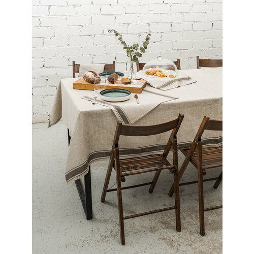 Скатерть льняная RUSBY 145 х 240 см бурая полоса
