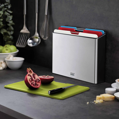 Каждое вкусное блюдо начинается с разделочной доски, поэтому бренд Joseph Joseph разработал серию Folio, чтобы сделать процесс приготовления пищи более эффективным и приятным. Набор разделочных досок включает в себя четыре доски с цветовой маркировкой, текстурированными поверхностями, удобными для использования ножей, и нескользящими ножками для безопасного нарезания ломтиками. Детали Вашего комфорта: набор из 4-х нескользящих разделочных досок для продуктов питания плюс тонкий футляр для хранения; предназначен для предотвращения взаимного загрязнения различных видов продуктов; цветные таблички со значками, указывающими, для какого типа продуктов их следует использовать - для сырого мяса, сырой рыбы, овощей или приготовленной пищи; легко моющиеся режущие поверхности, не затупляющие лезвия ножей; корпус удерживает доски отдельно, позволяя воздуху циркулировать. Уход и использование: доски — можно мыть в посудомоечной машине; корпус — протрите мягкой влажной тканью; не используйте абразивные поверхности и агр