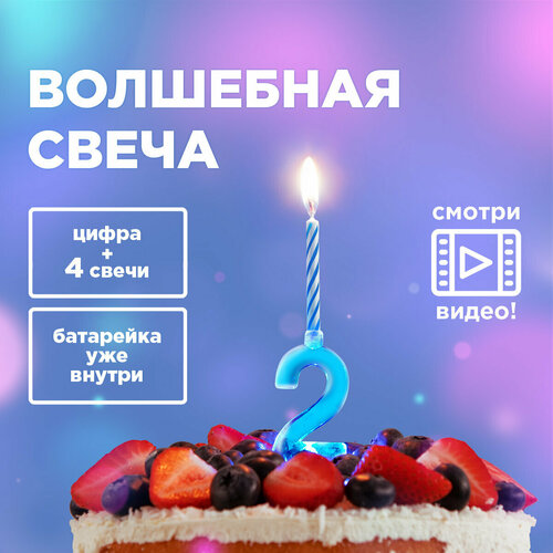 Свеча для торта "Волшебная", цифра 2, LED, PATERRA (401-992)